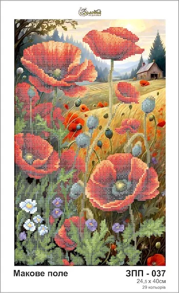 Схема під вишивку бісером. Друк на атласі. Розмір 24,5х40 см. До схеми додається список рекомендованих кольорів.