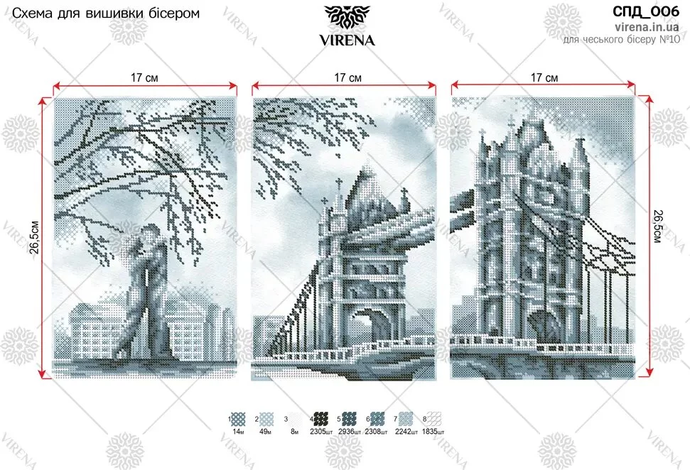 Модульні схеми під вишивку бісером. Друк на габардині. Схема складається з трьох частин розміром 17х26,5 см кожна. За вашим бажанням можемо укомплектувати схему бісером.