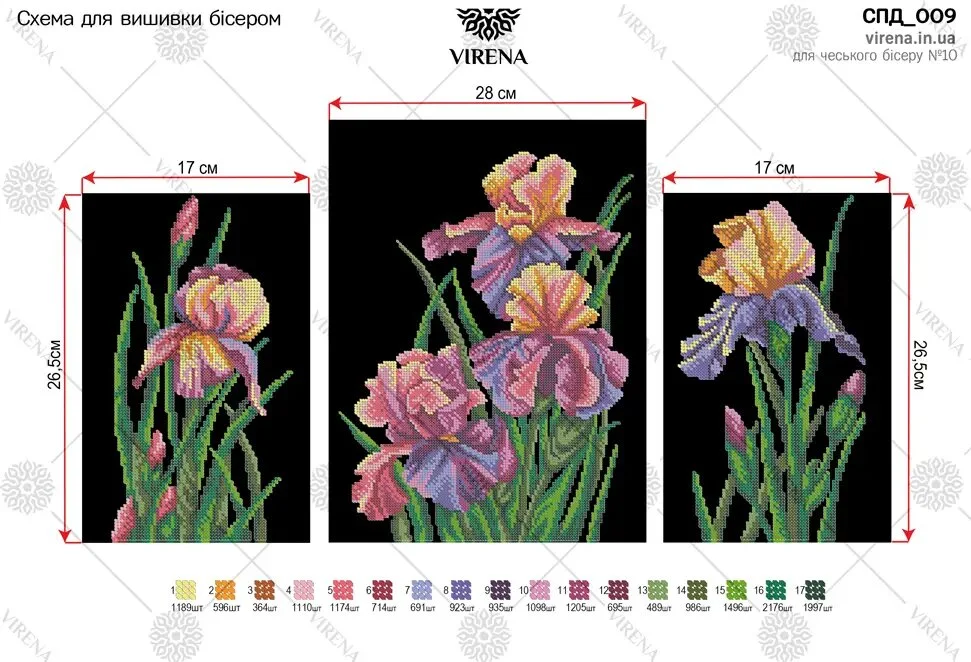 Модульні схеми під вишивку бісером. Друк на габардині. Схема складається з трьох частин:28х26,5 см та 17х26,5 см - 2 шт. За вашим бажанням можемо укомплектувати схему бісером.