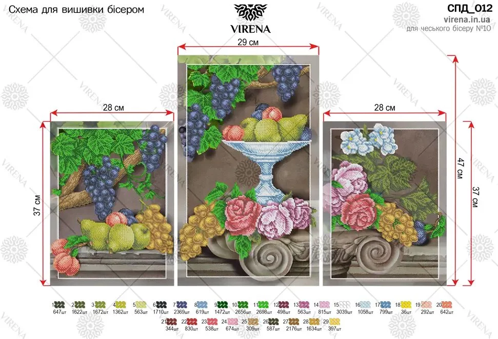 Модульні схеми під вишивку бісером. Друк на габардині. Схема складається з трьох частин:29х47 см та 28х37 см- 2 шт. За вашим бажанням можемо укомплектувати схему бісером.