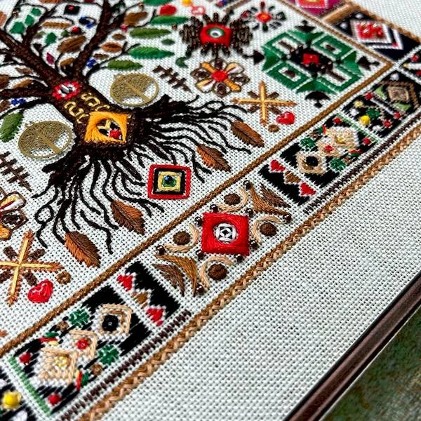 У дизайні використано мотив дерева як символу життя, роду, сили та безперервності поколінь, який здавна вважається оберегом і знаком гармонії. Орнамент доповнений геометричними та етнічними елементами, натхненними українською вишивальною традицією, що надає роботі глибокого змісту та автентичного характеру. Завдяки цьому сюжет виглядає актуально і водночас позачасово, органічно вписуючись як у класичний інтер’єр, так і в сучасний дизайн.