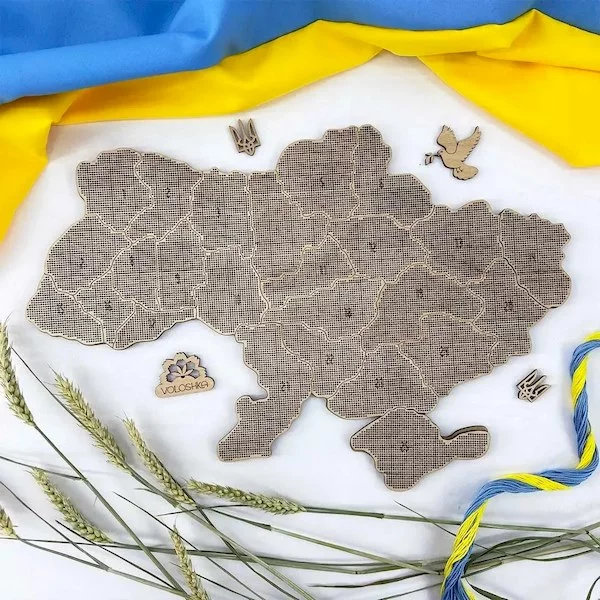 Мапа розділена на області. Після вишивання області потрібно приклеїтись до фігурної основи з МДФ.