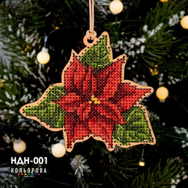 Набір для вишивки новорічної іграшки НДН-001 "Вогняна пуансетія"