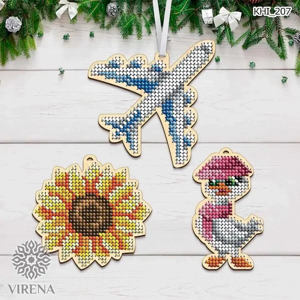 Комплект тематичних іграшок з дерева для вишивки бісером.