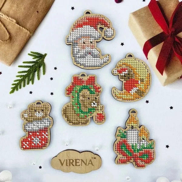Комплект іграшок новорічних з дерева для вишивки бісером.
