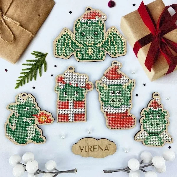 Комплект іграшок новорічних з дерева для вишивки бісером.