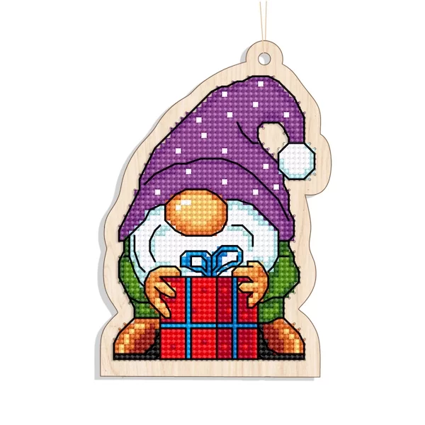Новорічна іграшка підвіс на ялинку – Гном із подарунком FNGi-013