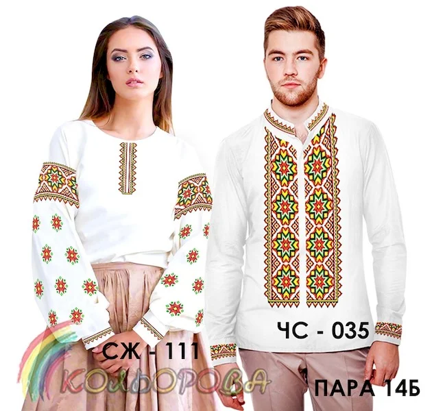 Комплект вишиванок для пар складається з чоловічої сорочки та жіночої сорочки