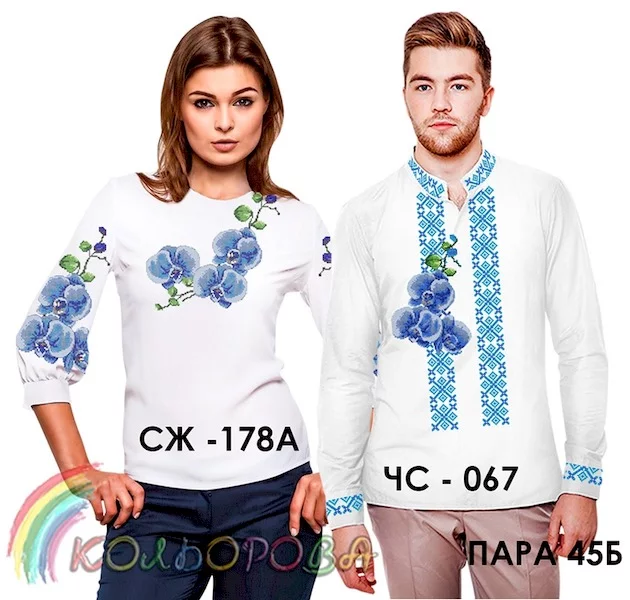 Комплект вишиванок для пар складається з чоловічої сорочки та жіночої сорочки