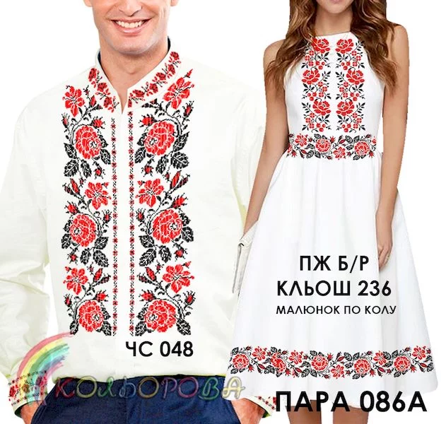 Комплект вишиванок для пар складається з чоловічої сорочки та плаття жіночого без рукавів кльош.