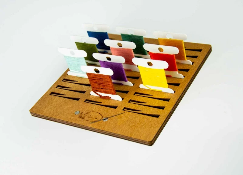 Підставка для бобін (шпуль) ТМ Embroidery Craft з магнітом для голок 30 прорізів. Прорізи з фіксатором 14*14 волоський горіх PB-008g