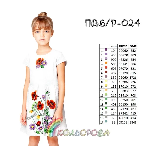 Також є титулка-ключ в якій прописані рекомендовані кольори бісеру Preciosa та ниток муліне DMC, їх кількість.