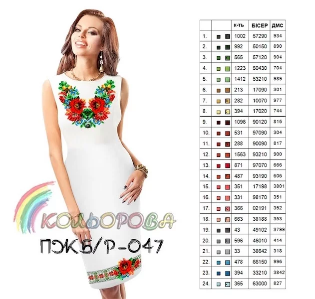 - титулка-ключ з рекомендованими кольорами бісеру Preciosa або муліне DMC та їх кількістю.