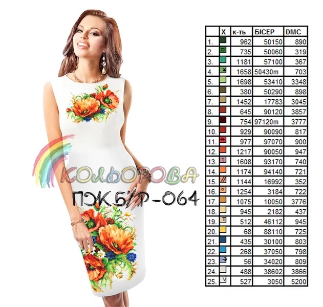 - титулка-ключ з рекомендованими кольорами бісеру Preciosa або муліне DMC та їх кількістю.