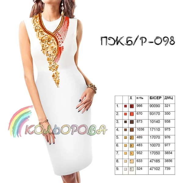- титулка-ключ з рекомендованими кольорами бісеру Preciosa або муліне DMC та їх кількістю.