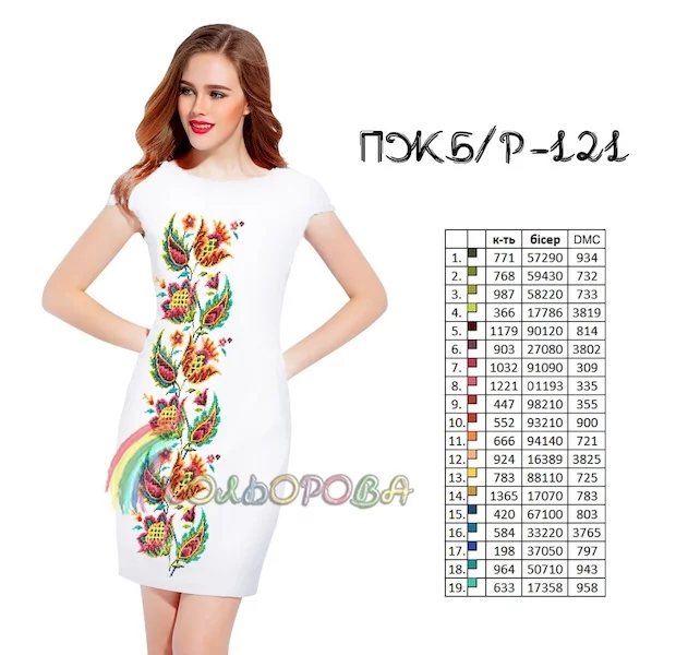 - титулка-ключ з рекомендованими кольорами бісеру Preciosa або муліне DMC та їх кількістю.