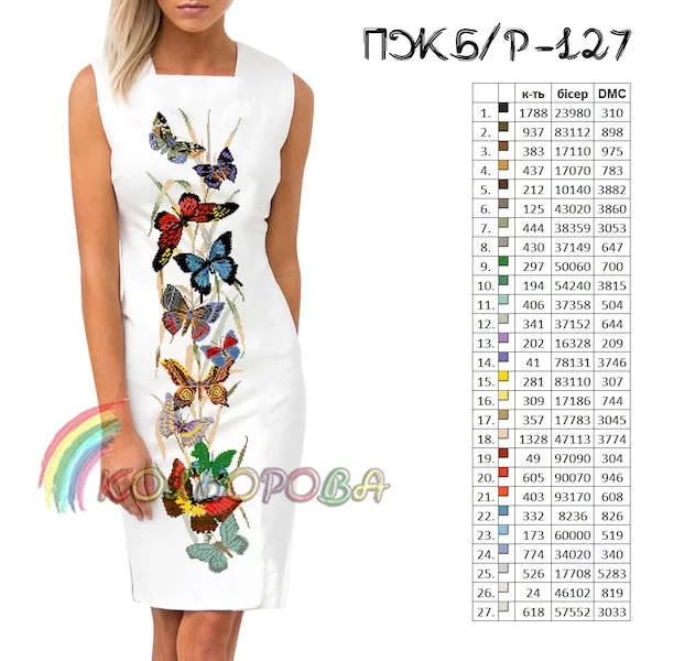 - титулка-ключ з рекомендованими кольорами бісеру Preciosa або муліне DMC та їх кількістю.