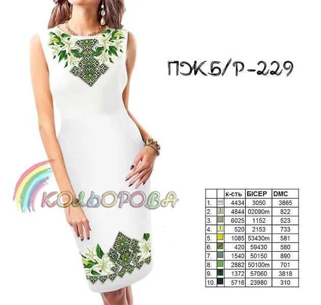 - титулка-ключ з рекомендованими кольорами бісеру Preciosa або муліне DMC та їх кількістю.