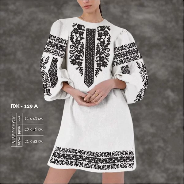 - на чорній (темній) тканині малюнок не наноситься. Малюнок друкується на водорозчинному флізеліні, який додається у комплект. Ціна заготовки не змінюється, але вишивати менш зручно.