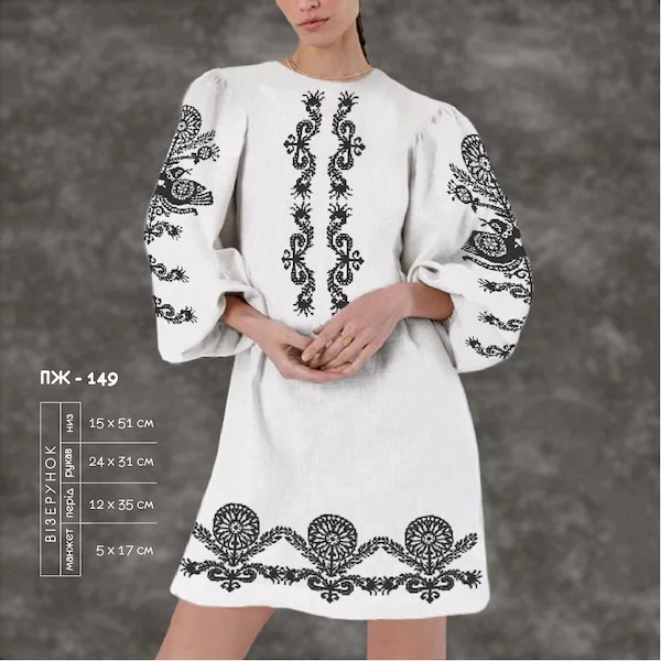 - на чорній (темній) тканині малюнок не наноситься. Малюнок друкується на водорозчинному флізеліні, який додається у комплект. Ціна заготовки не змінюється, але вишивати менш зручно.