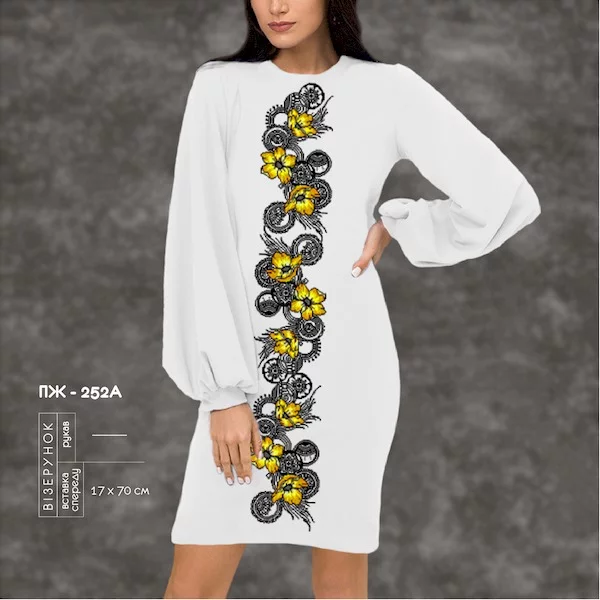 - на чорній (темній) тканині малюнок не наноситься. Малюнок друкується на водорозчинному флізеліні, який додається у комплект. Ціна заготовки не змінюється, але вишивати менш зручно.