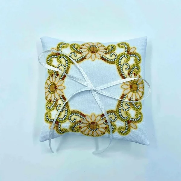 Подушка декоративна весільна під обручки для вишивки бісером на габардині, що проклеєний флізеліном.
