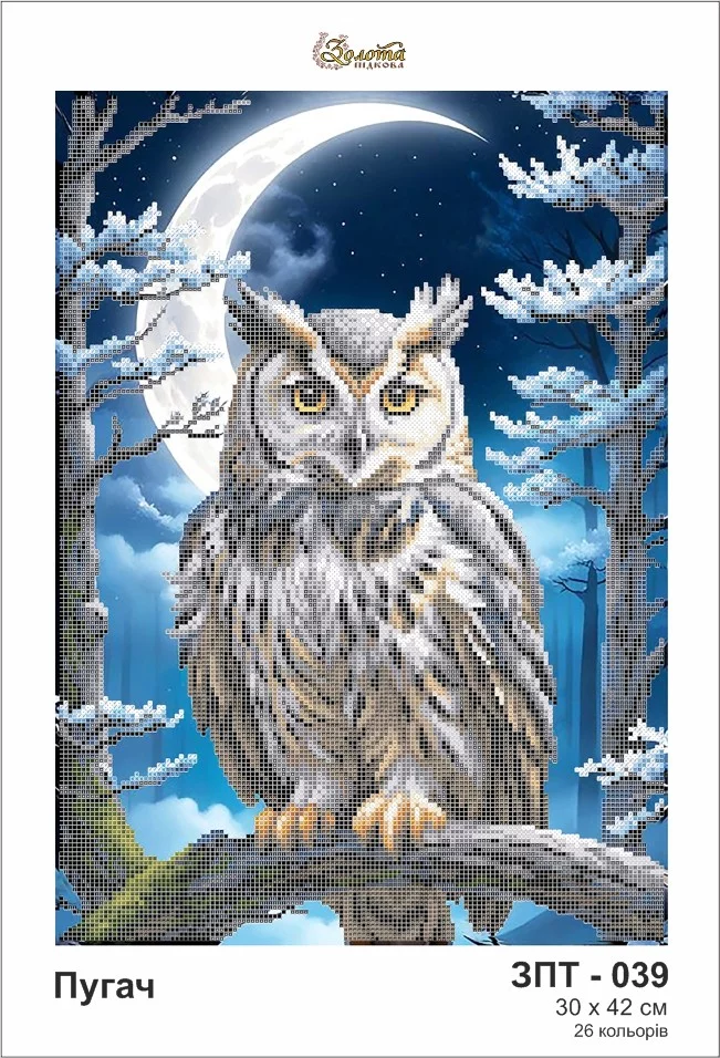 Схема під вишивку бісером. Друк на атласі. Розмір 30х42 см. До схеми додається список рекомендованих кольорів бісеру.
