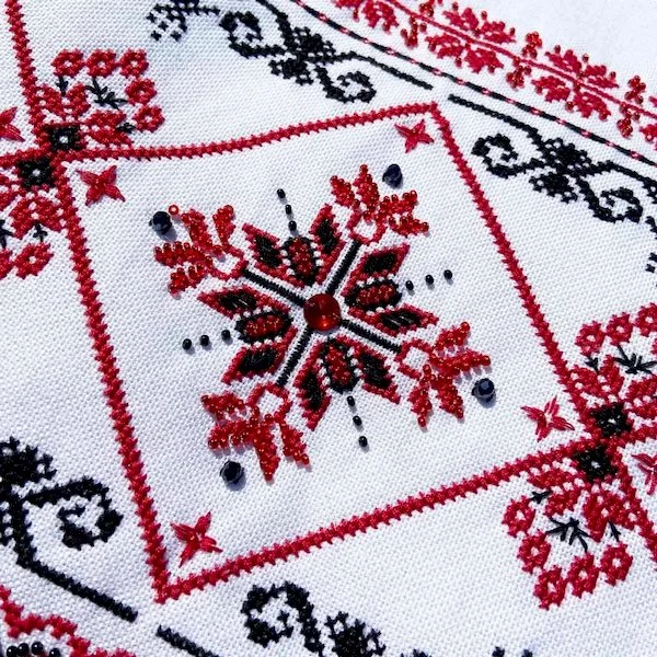 Вишивається хрестиком, шовчиками, доповнений бісером і бусинами, він поєднує традицію та сучасну елегантність.