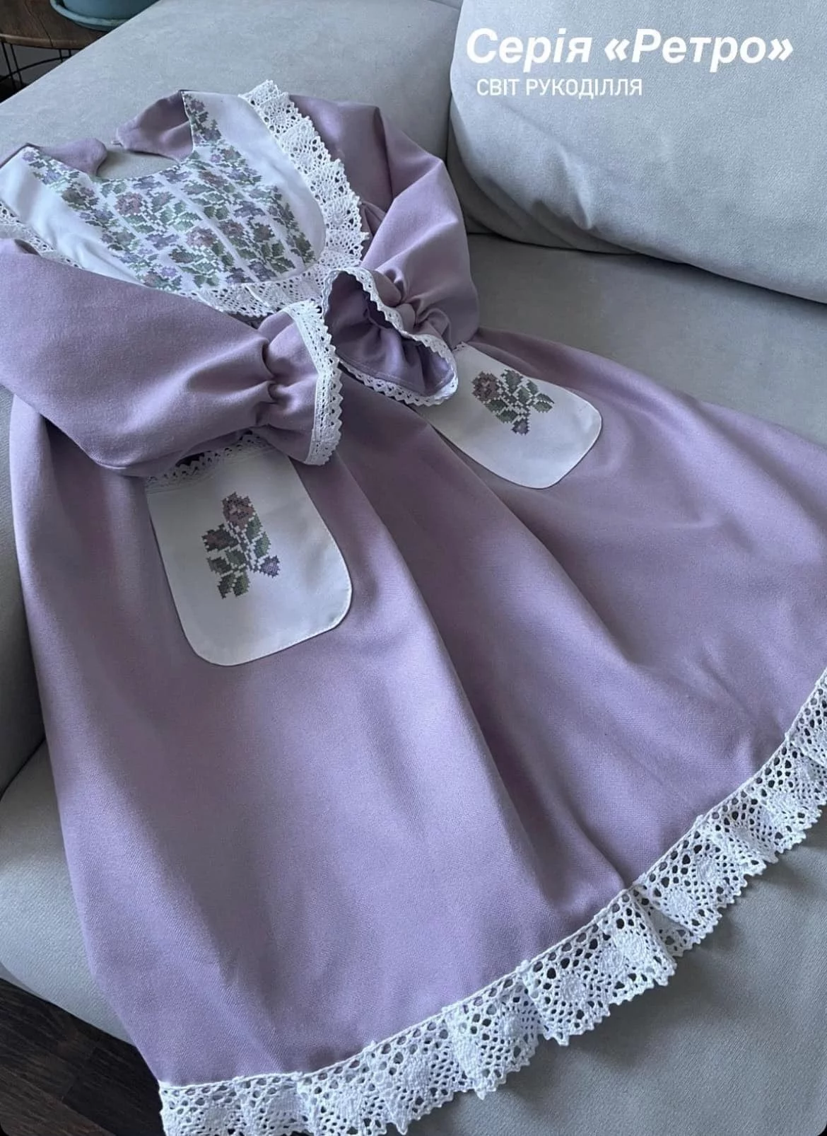 Пошита сукня під вишивку бісером. Матеріал сукні - лілове домоткане полотно. Після вишивки сукня не потребує додаткових дій по зшиванню. Зверніть увагу! При пошитті можлива похибка в 1-2 см. Будь ласка, перед замовленням звіряйтесь з розмірною сіткою виробника.