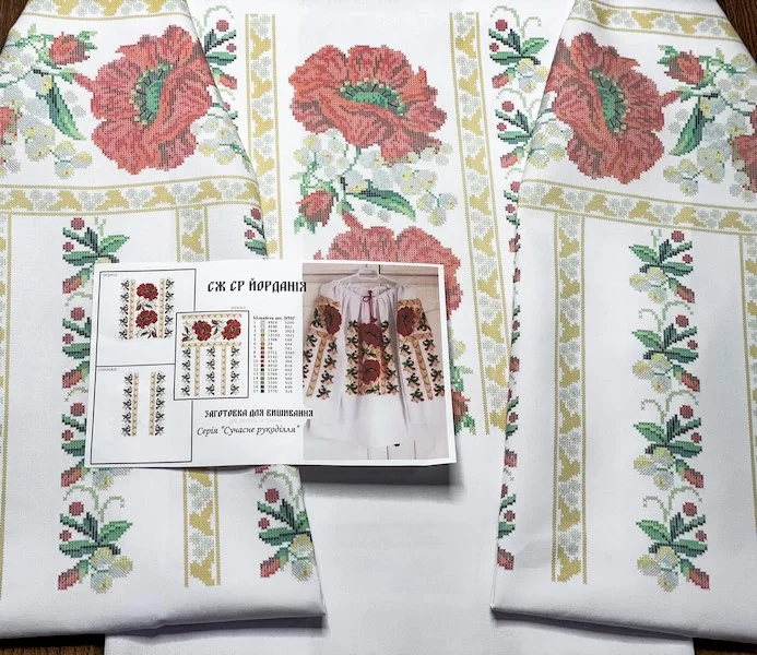 Не пошита сорочка під вишивку бісером або нитками. На заготовку нанесено малюнок у вигляді клітинок по яким необхідно вишивати бісером або нитками. Заготовка складається з прямокутних відрізків тканини, які після вишивки потрібно розкроїти та сшити по своєму фасону та фігурі.