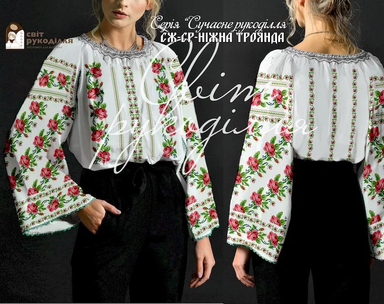 Не пошита сорочка під вишивку бісером або нитками. На заготовку нанесено малюнок у вигляді клітинок по яким необхідно вишивати бісером або нитками. Заготовка складається з прямокутних відрізків тканини, які після вишивки потрібно розкроїти та сшити по своєму фасону та фігурі.