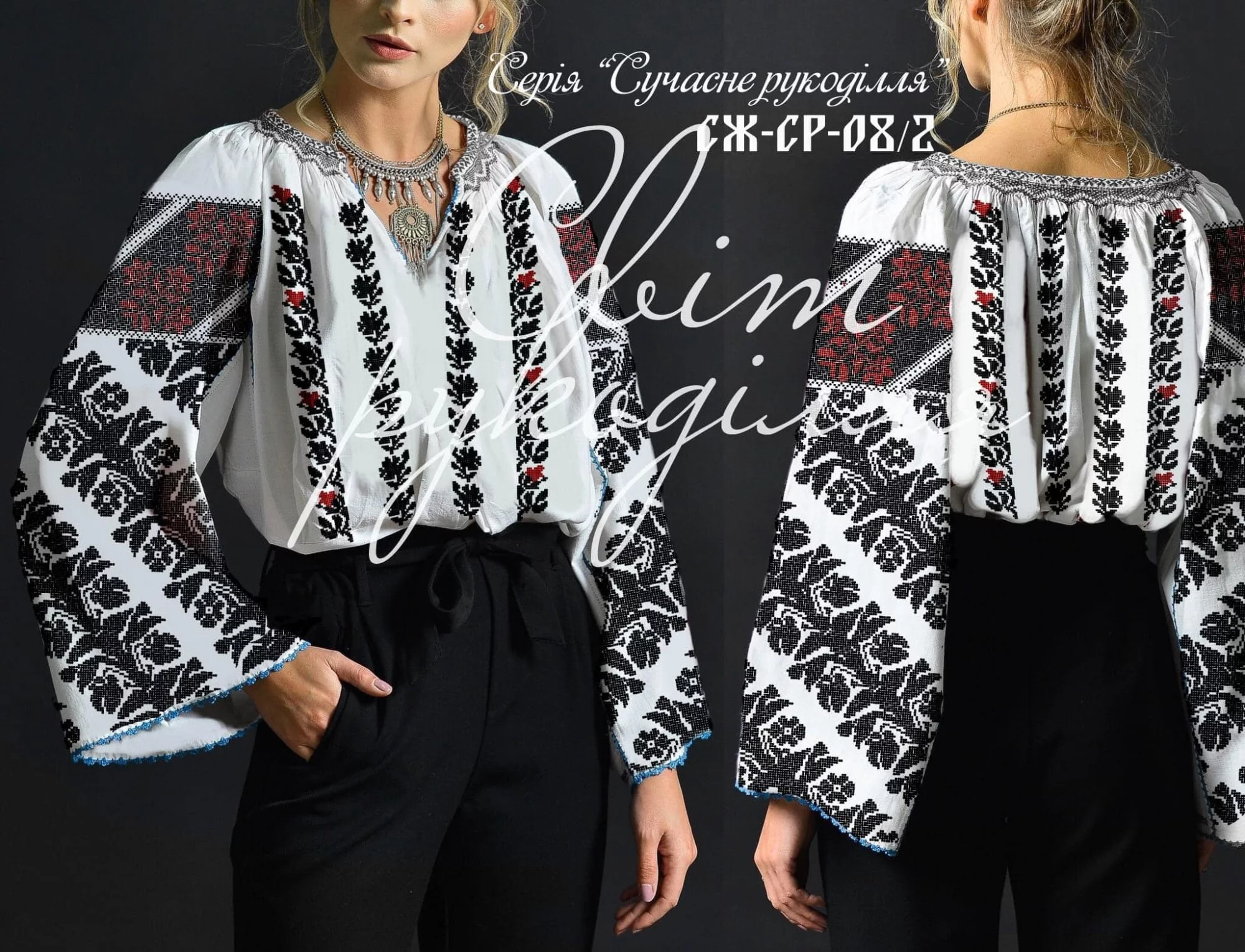 Не пошита сорочка під вишивку бісером або нитками. На заготовку нанесено малюнок у вигляді клітинок по яким необхідно вишивати бісером або нитками. Заготовка складається з прямокутних відрізків тканини, які після вишивки потрібно розкроїти та сшити по своєму фасону та фігурі.