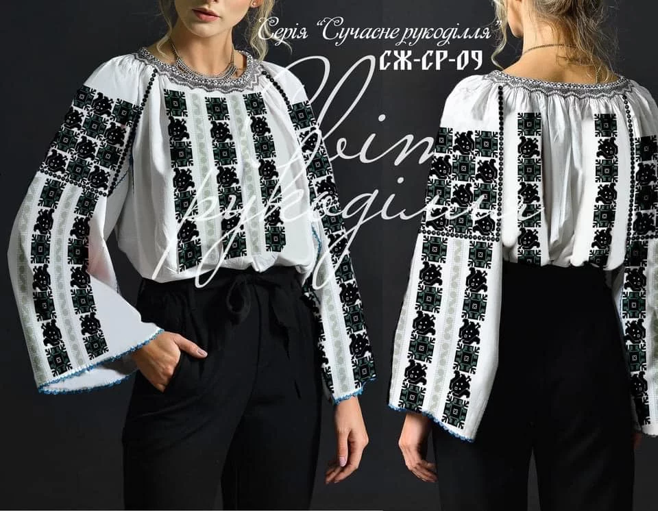 Не пошита сорочка під вишивку бісером або нитками. На заготовку нанесено малюнок у вигляді клітинок по яким необхідно вишивати бісером або нитками. Заготовка складається з прямокутних відрізків тканини, які після вишивки потрібно розкроїти та сшити по своєму фасону та фігурі.
