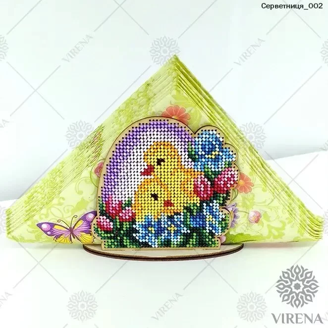Придбавши серветницю ви отримаєте дві бічні стінки та основу, також серветниця комплектується фігурними фетровими пластинами для декорування звороту вишивки та вкладкою з надрукованою схемою (на вкладці зображена схема та розкладка бісеру)