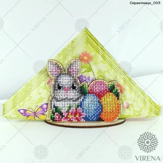 Придбавши серветницю ви отримаєте дві бічні стінки та основу, також серветниця комплектується фігурними фетровими пластинами для декорування звороту вишивки та вкладкою з надрукованою схемою (на вкладці зображена схема та розкладка бісеру)