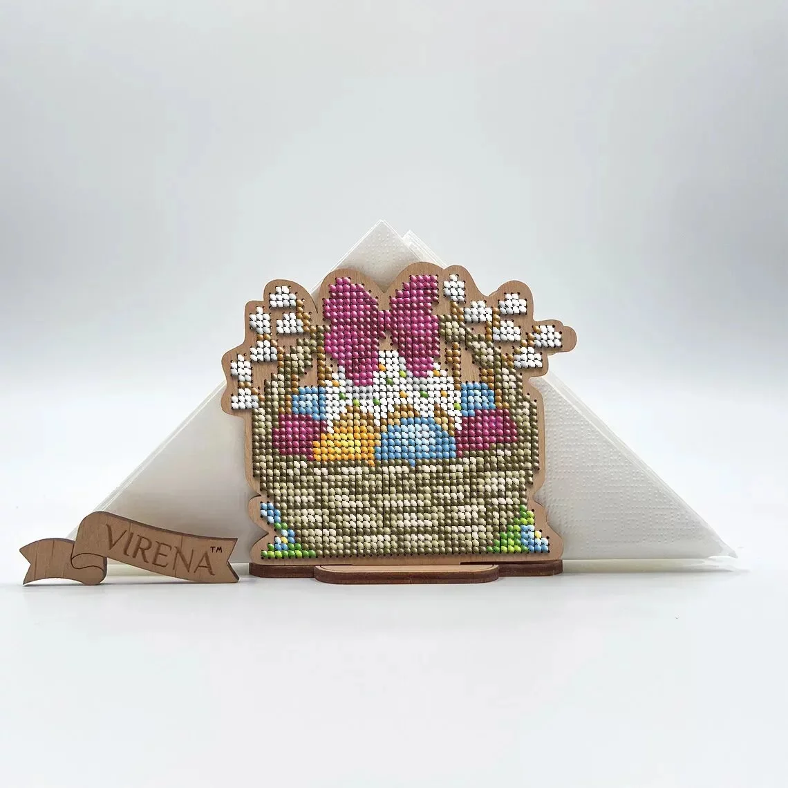 Придбавши серветницю ви отримаєте дві бічні стінки та основу, також серветниця комплектується фігурними фетровими пластинами для декорування звороту вишивки та вкладкою з надрукованою схемою (на вкладці зображена схема та розкладка бісеру)