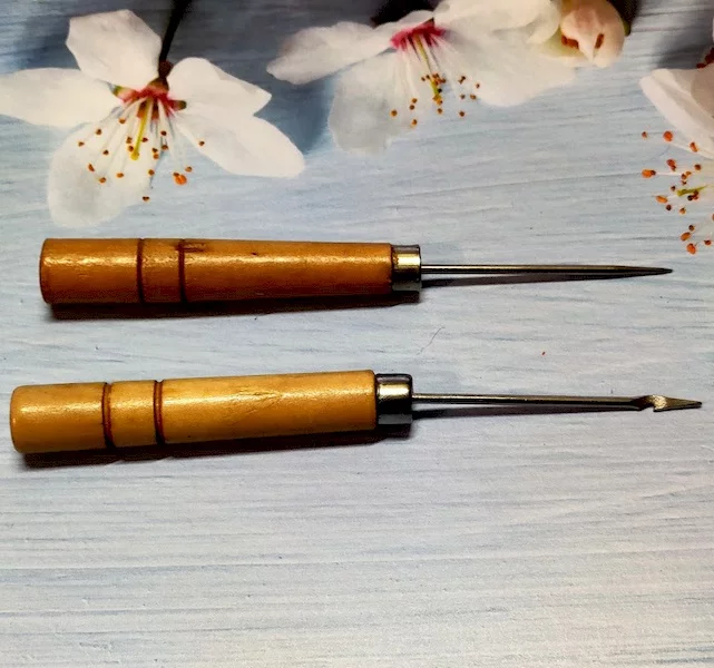 Шило з дерев'яною ручкою. В наявності з гачком і без (оберіть в меню). Довжина залізної частини - 5 см