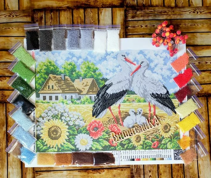 Схема під вишивку бісером. Друк на габардині. Розмір 30х42 см. До схеми додається список рекомендованих кольорів бісеру.