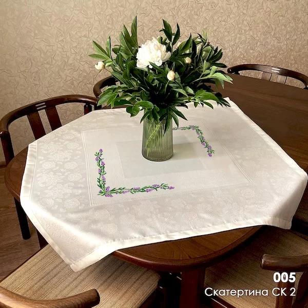 Зверніть увагу! Скатертина є готовим виробом, підшита та підкладена. Ширина місця під вишивку нитками складає 12 см, розташоване по центру периметра скатертини. Малюнок на виріб не наноситься!