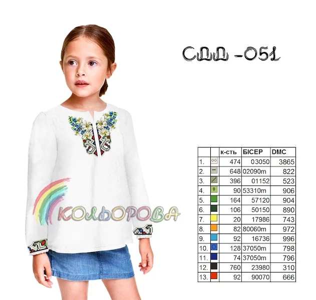 Заготовка під вишивку сорочки для дівчинки віком 5-10 років).