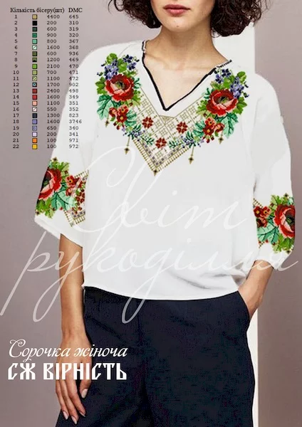 Не пошита заготовка під вишивку бісером або нитками. Друк на тканині. Заготовка складається з прямокутних відрізків тканини, які після вишивки необхідно розкроїти та сшити по своєму розміру та фасону.