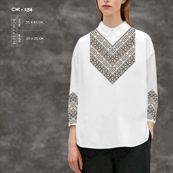 - на чорній (темній) тканині малюнок не наноситься. Малюнок друкується на водорозчинному флізеліні, який додається у комплект. Ціна заготовки не змінюється, але вишивати менш зручно.