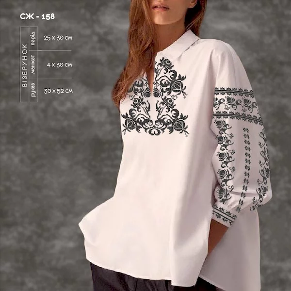 - на чорній (темній) тканині малюнок не наноситься. Малюнок друкується на водорозчинному флізеліні, який додається у комплект. Ціна заготовки не змінюється, але вишивати менш зручно.