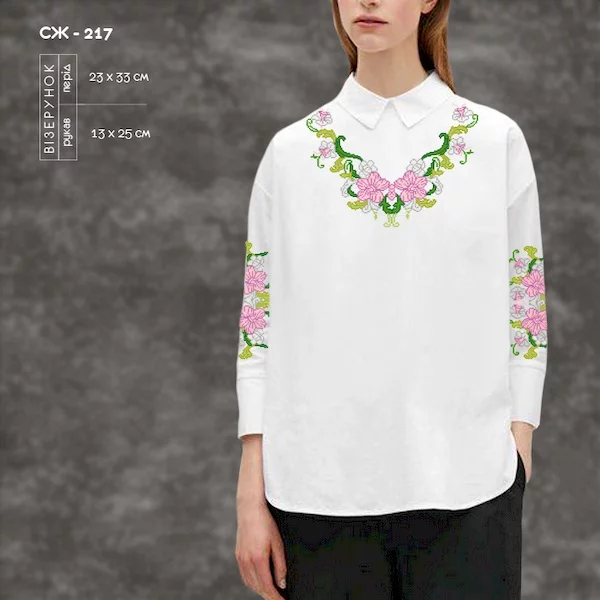 - на чорній (темній) тканині малюнок не наноситься. Малюнок друкується на водорозчинному флізеліні, який додається у комплект. Ціна заготовки не змінюється, але вишивати менш зручно.