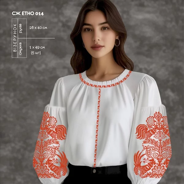 В даних моделях малюнок спереду (повздовжній орнамент) наноситься на окремий відрізок тканини, який потім нашивається на потрібну довжину.