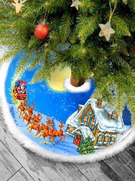 Матеріал — габардин проклеєний флізеліном. По краях оздоблена білим штучним хутром. Застібається спідниця липучками.
