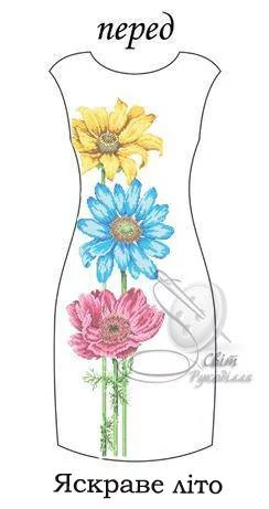 Заготовка під вишивку сукні. Заготовка НЕ ПОШИТА. Вона складається з прямокутних відрізків тканини, які після вишивки необхідно розкроїти та сшити по своєму фасону і розміру. Розміри відрізків на заготовку - 75х115 см - 2 шт (на перед і спинку) для габардину і 70х115 см -2 шт, для домотканого полотна. На темних тканинах друку немає! (До тканини додається водорозчинний флізелін з надрукованою схемою). Будь ласка, в коментарях до замовлення вказуйте бажаний колір тканини.