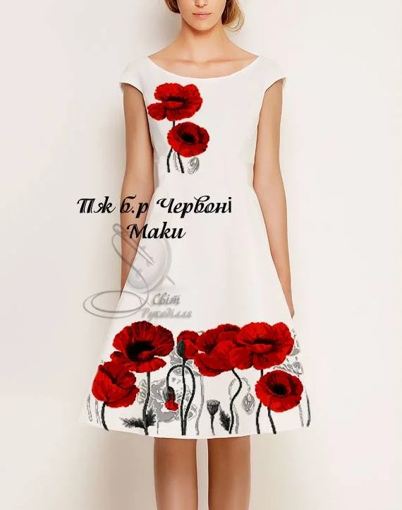 Заготовка під вишивку сукні. Заготовка НЕ ПОШИТА. Вона складається з прямокутних відрізків тканини, які після вишивки необхідно розкроїти та сшити по своєму фасону і розміру. Розміри відрізків на заготовку - 75х115 см - 2 шт (на перед і спинку) для габардину і 70х115 см -2 шт, для домотканого полотна. На темних тканинах друку немає! (До тканини додається водорозчинний флізелін з надрукованою схемою). Будь ласка, в коментарях до замовлення вказуйте бажаний колір тканини.