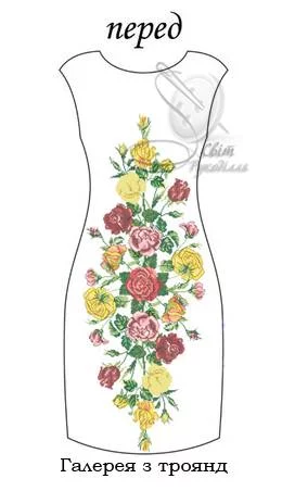 Заготовка під вишивку сукні. Заготовка НЕ ПОШИТА. Вона складається з прямокутних відрізків тканини, які після вишивки необхідно розкроїти та сшити по своєму фасону і розміру. Розміри відрізків на заготовку - 75х115 см - 2 шт (на перед і спинку) для габардину і 70х115 см -2 шт, для домотканого полотна. На темних тканинах друку немає! (До тканини додається водорозчинний флізелін з надрукованою схемою). Будь ласка, в коментарях до замовлення вказуйте бажаний колір тканини.