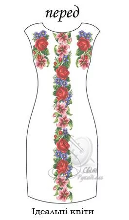 Заготовка під вишивку сукні. Заготовка НЕ ПОШИТА. Вона складається з прямокутних відрізків тканини, які після вишивки необхідно розкроїти та сшити по своєму фасону і розміру. Розміри відрізків на заготовку - 75х115 см - 2 шт (на перед і спинку) для габардину і 70х115 см -2 шт, для домотканого полотна. На темних тканинах друку немає! (До тканини додається водорозчинний флізелін з надрукованою схемою). Будь ласка, в коментарях до замовлення вказуйте бажаний колір тканини.